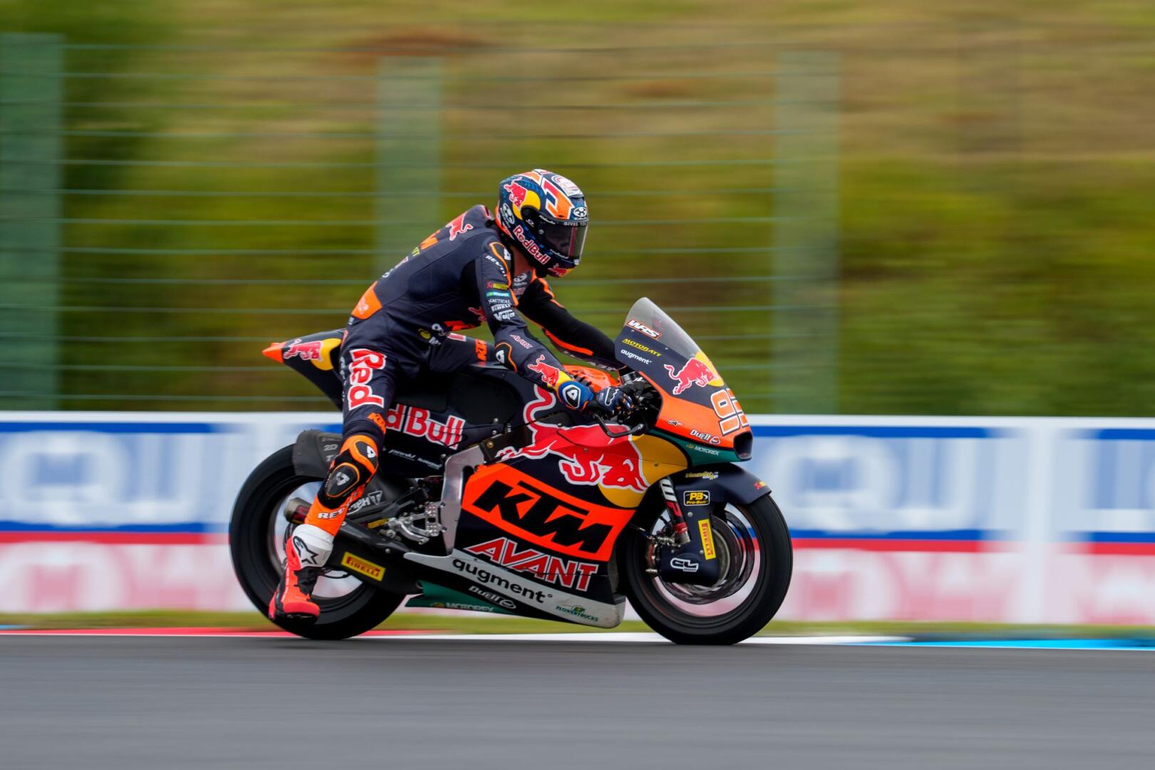 Na de Moto3 coureurs was het de beurt aan de Moto2 klasse voor hun eerste vrije training op een nat Brno. Voor Daniel Holgado duurde het iets langer, er werd nog hard gewerkt aan zijn Kalex. Milan Pawelec en Mattia Pasini komen dit weekend met een wildcard aan de start.