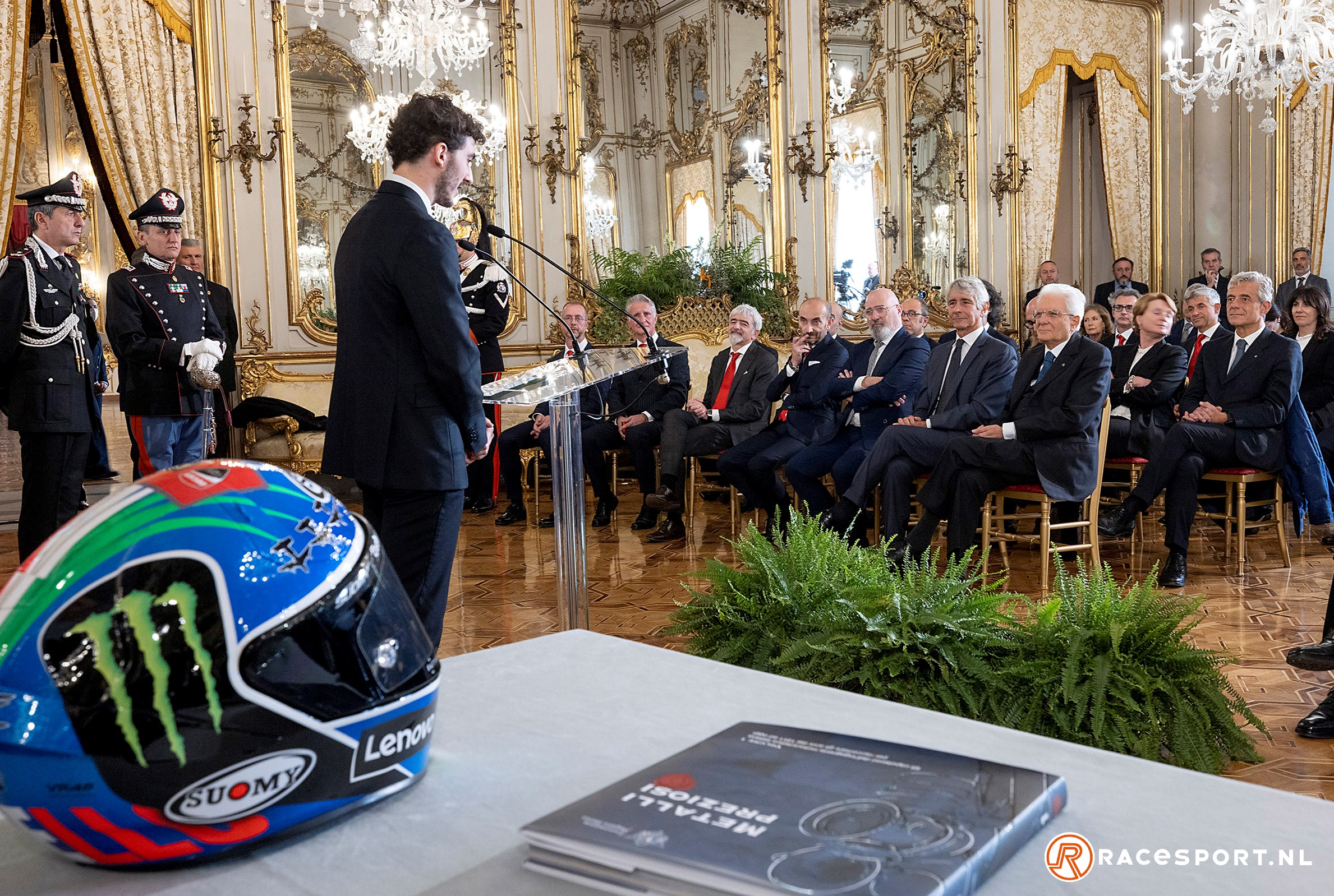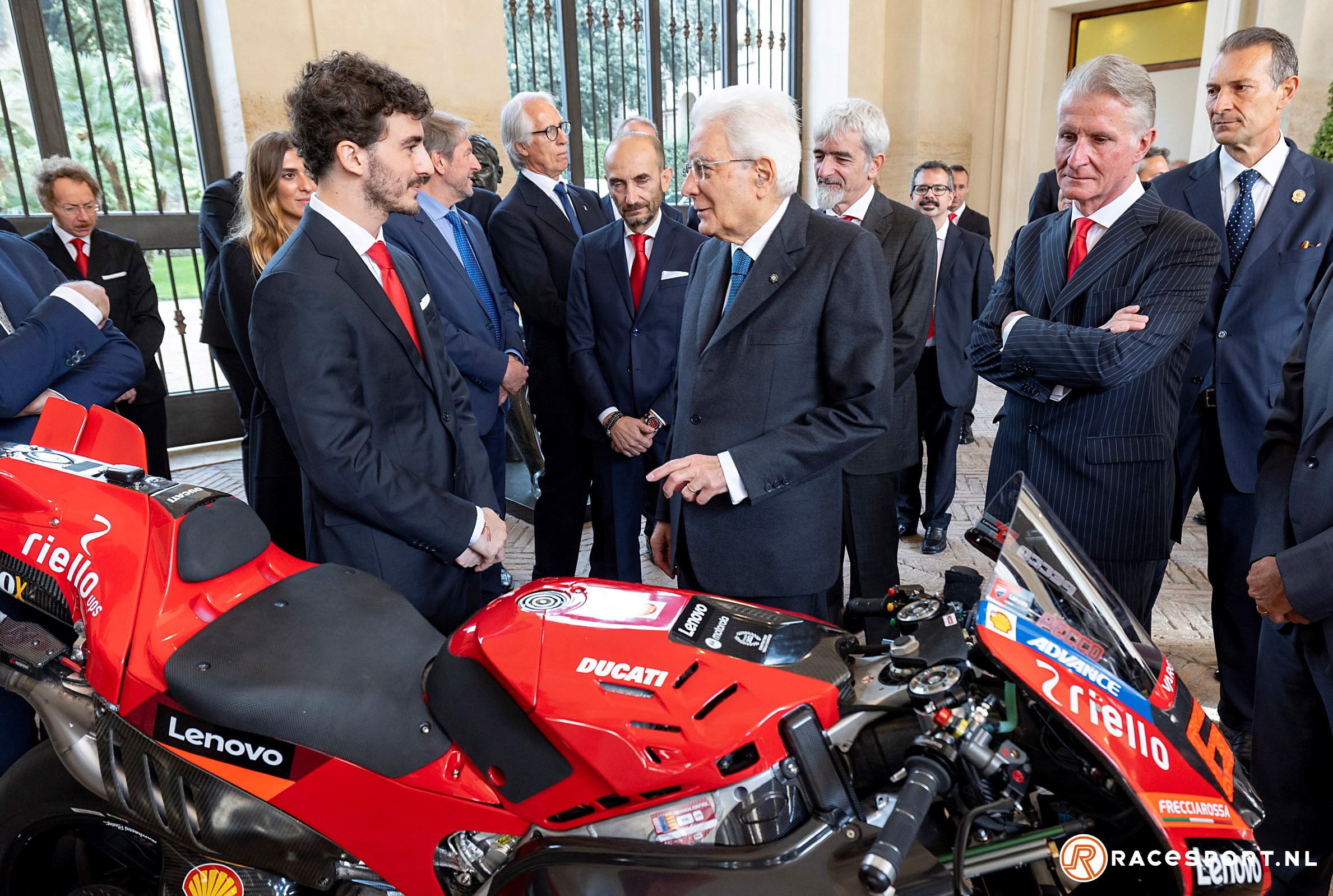 Pecco Bagnaia, het Ducati Lenovo Team en het management van Ducati (Corse) zijn woensdag op bezoek geweest bij de Italiaanse president in het Quirinale in Rome. De Italiaan werd anderhalve week geleden voor het eerst MotoGP wereldkampioen en behaalde de eerste wereldtitel voor Ducati na vijftien jaar.