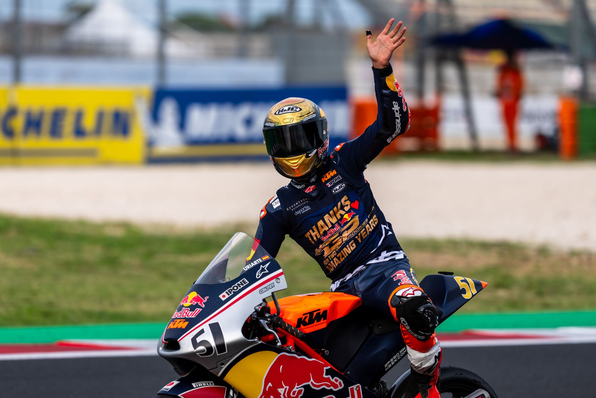Pratama ging op dat moment onderuit na contact met Yaroslav Karpushin waar Hakim Danish ook bij betrokken was. Door deze crash was Uriarte virtueel kampioen. Morelli kwam met drie ronden te gaan naar de tweede plaats en begon het gat naar Uriarte dicht te rijden. Van Crugten was geklommen naar de achttiende positie.