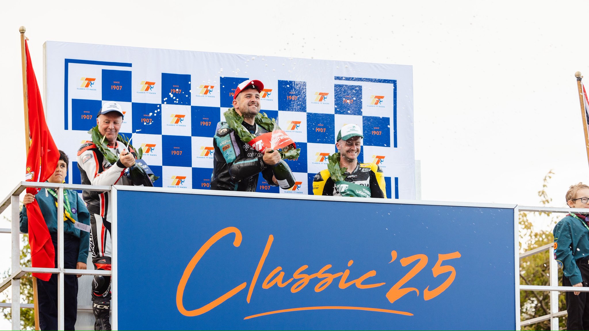 Dat was nu niet het geval en met een voorsprong van zo’n 47 seconden wist Michael Dunlop deze Lightweight Classic TT race te winnen. Het was voor het eerst in zijn carrière dat de Noord-Ier op een tweetaktmachine wist te winnen op het Isle of Man. De 62-jarige (!) Ian Lougher, 10-voudig TT-winnaar, werd tweede in deze race op de Yamaha TZ250 voor Adam McLean die het podium compleet maakte, ook op een Yamaha TZ250.