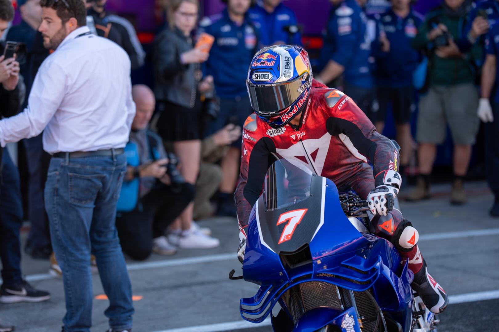Toprak Razgatlioglu, die uitkomt in een neutraal rood-zwart-wit Dainese-pak vanwege zijn nog lopende contract bij BMW, reed zijn eerste ronden met startnummer 7. Zijn vertrouwde nummer 54 is in de MotoGP reeds bezet door Fermin Aldeguer.