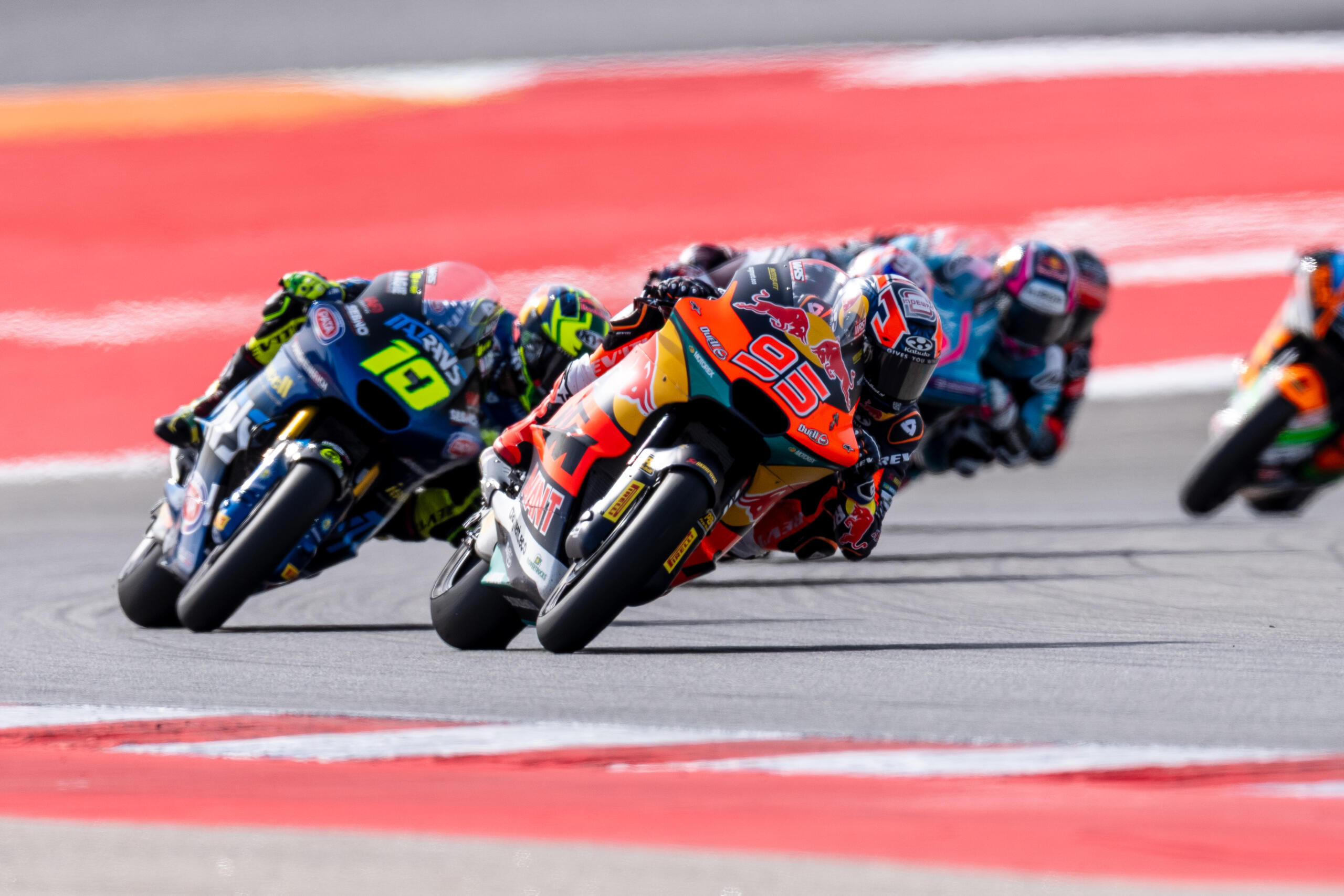 Het ingaan van de vierde ronde van de Moto2-race tijdens de Grand Prix van Portugal in 2025. Een moment voor de geschiedenisboeken. Voor het eerst rijdt een Nederlander aan kop in de Moto2-klasse. Collin Veijer passeert op dat moment kampioenschapsleider Diogo Moreira. De eerste keer dat Collin aan kop reed in de Moto3 was tijdens de Duitse Grand Prix van 2023. Dat gebeurde na een raketstart, maar het moment duurde niet lang: anderhalve ronde later lag hij in het grind. En op dat moment had hij meerdere posities moeten prijsgeven. Deze keer duurde het véél langer. Zelfs zo lang dat er serieuze hoop ontstond op een legendarische Nederlandse overwinning. Vijftien ronden lang leidde Collin het Moto2-veld in Portimão. En hoe! Halverwege de race bouwde hij zijn voorsprong uit tot bijna een seconde. De achtervolgers hadden grote moeite om de Red Bull KTM Ajo-coureur te volgen, vooral in de vierde en eerste sector van de ‘rollercoaster’, zoals dit circuit wordt genoemd. In de slotfase kwam Collin net iets te kort qua kracht in zijn arm – nog een nasleep van de blessure die hij eerder in het seizoen opliep. Toch hield hij knap stand en veroverde hij de tweede plaats: zijn eerste podium in de Moto2.