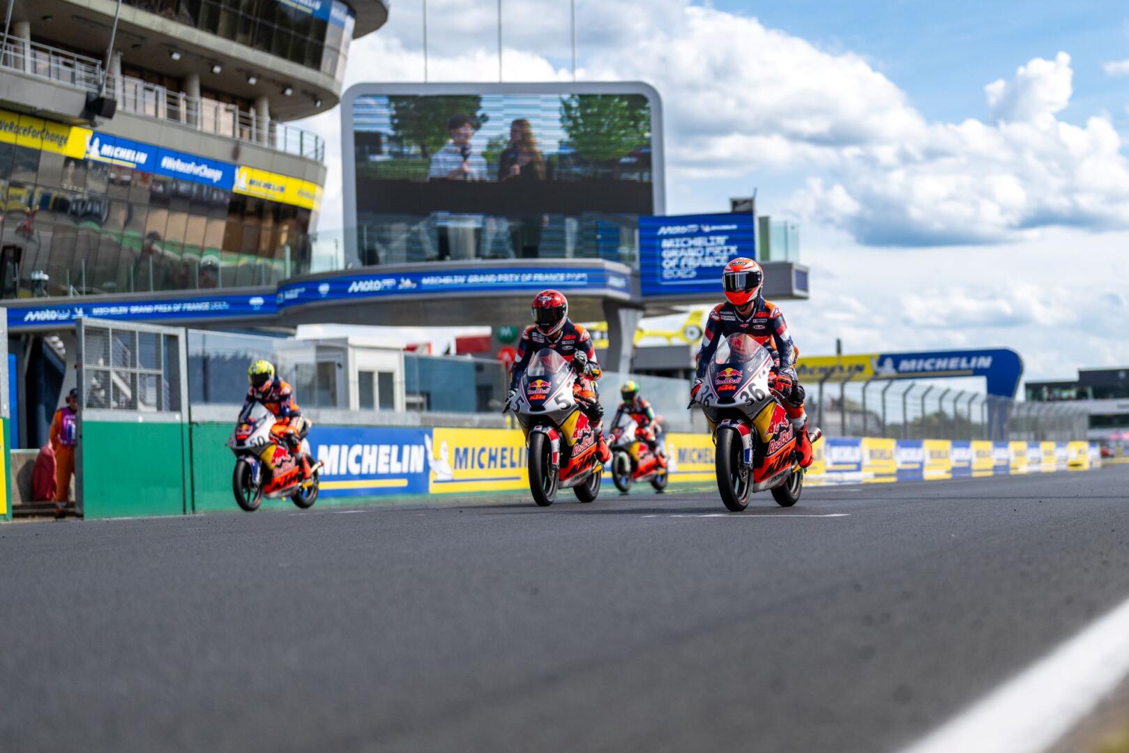 Brian Uriarte heeft zaterdagmiddag de eerste Red Bull MotoGP Rookies Cup race op het Bugatti Circuit Le Mans op zijn naam geschreven. De jonge coureur uit Spanje wist in een vroegtijdig afgevlagde race Hakim Danish voor te blijven. Giulio Pugliese werd derde.