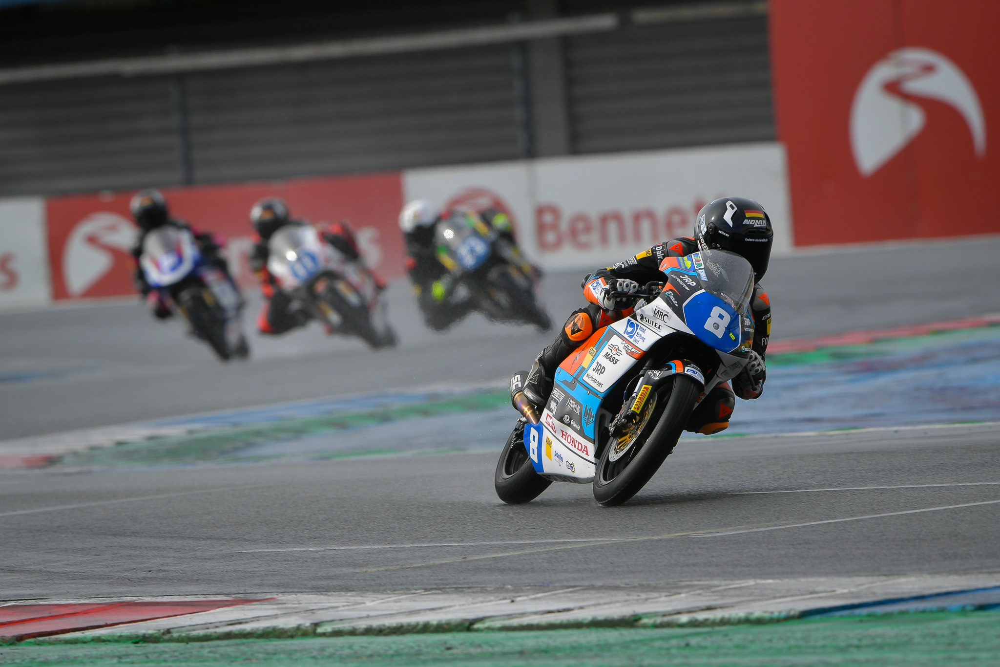 Bij de start nam Lorenzo Pontillo de leiding, terwijl Tobias Kitzbichler al in de Haarbocht onderuitging. Manny van Tilburg kwam als zeventiende door na de openingsronde en was daarmee direct de hoogst geklasseerde Nederlander. Kratochwil nam kort daarna de leiding over en trok het tempo flink op, waardoor een kopgroep van zes ontstond. Daarachter reden Van Tilburg, Ruben Nijland, Casper Pennings en Levi Flier samen in een groep net buiten de punten.