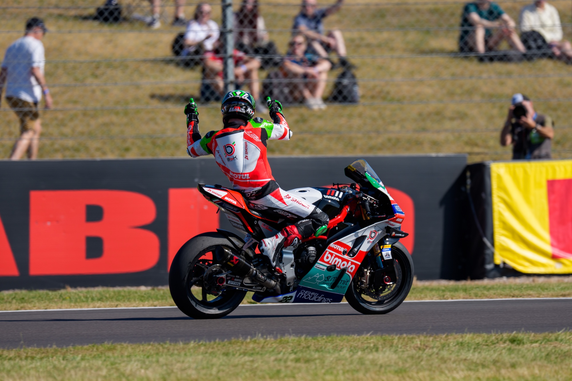 Zaterdagochtend om 09:00 uur lokale tijd begonnen de WorldSBK coureurs op Donington Park aan hun 20 minuten tellende derde vrije training van de Prosecco DOC UK Round. De sessie werd echter al na een aantal minuten onderbroken door een rode vlag situatie, dit nadat Andrea Iannone zijn Ducati de geest gaf en zorgde voor olie op de baan en Michael van der Mark en de dit weekend met een wildcard aan de start verschijnende Tommy Bridewell vervolgens ten val kwamen.