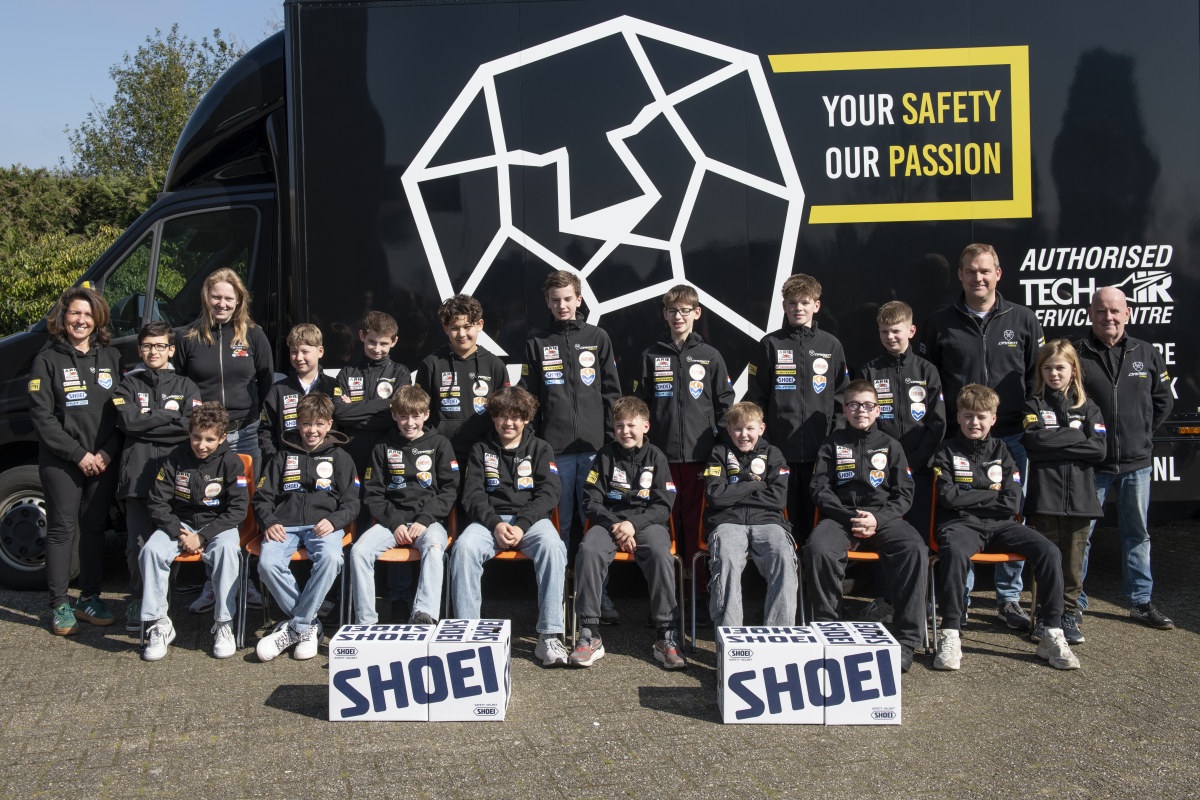 Naast de overalls werden ook de nieuwe Shoei NXR-helmen uitgereikt. Deze werden via het Personal Fitting System door specialist Sharon van Soest volledig op maat gemaakt voor iedere rijder. De uitrusting werd compleet gemaakt met persoonlijke gehoorbescherming van NOIZEZZ. Na afloop volgde de traditionele groepsfoto (Max Borgelt was verhinderd en ontbreekt op de foto).