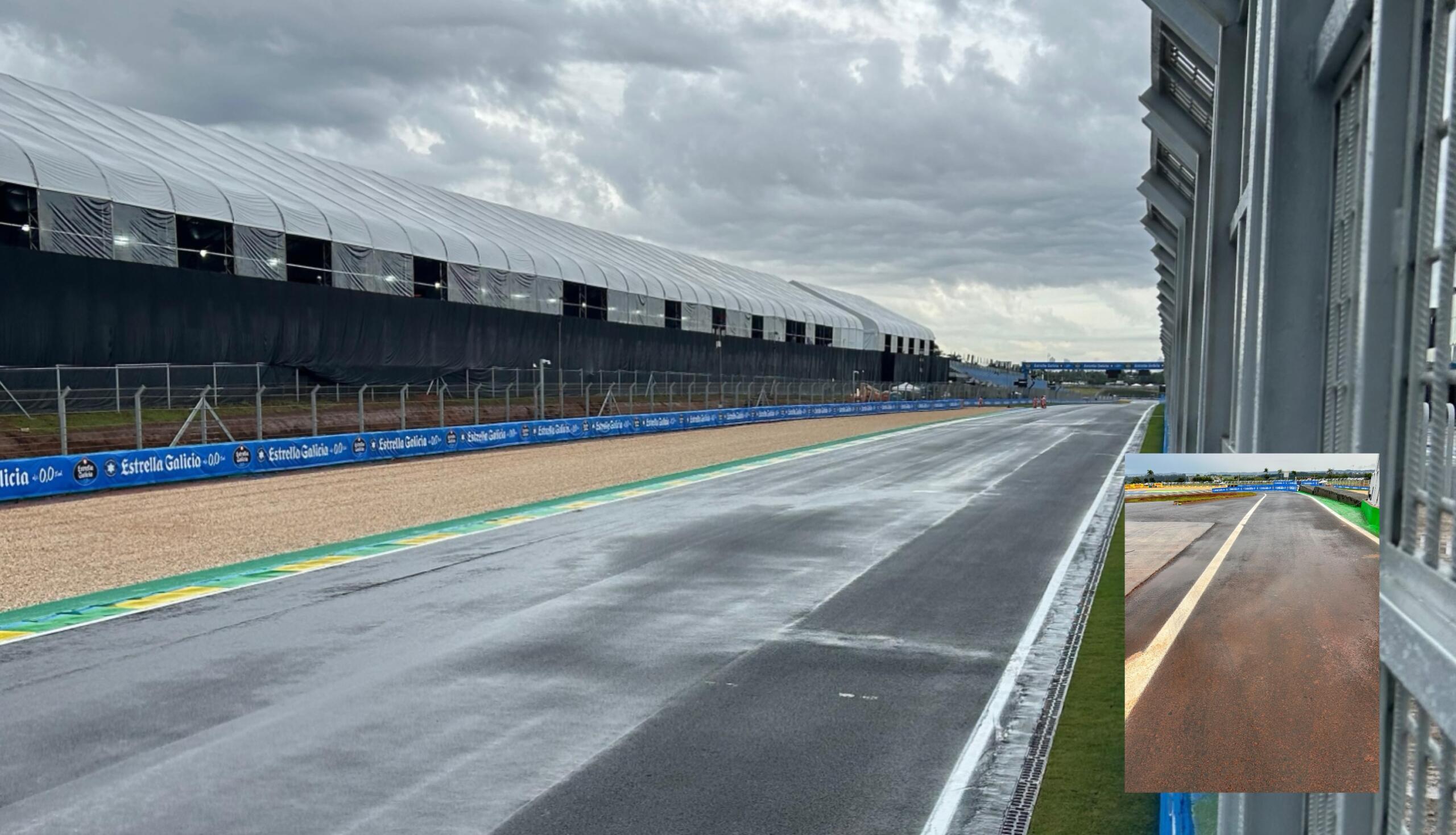 Hoewel het ongeveer een half uur voor de geplande start van Moto3 FP1 stopte met regenen, bleef de situatie in Goiânia verre van ideaal. Op meerdere delen van het circuit bleef water staan en werd er vrijdagochtend nog volop gewerkt met pompen en groot materieel om de ergste watermassa’s af te voeren. Eerder deze week kampte het circuit al met forse wateroverlast na aanhoudende regenval in de regio. De schade lijkt wel minder groot dan eerder deze week, maar duidelijk was dat de wedstrijdleiding geen enkel risico wilde nemen met de start van de eerste sessie van het weekend.