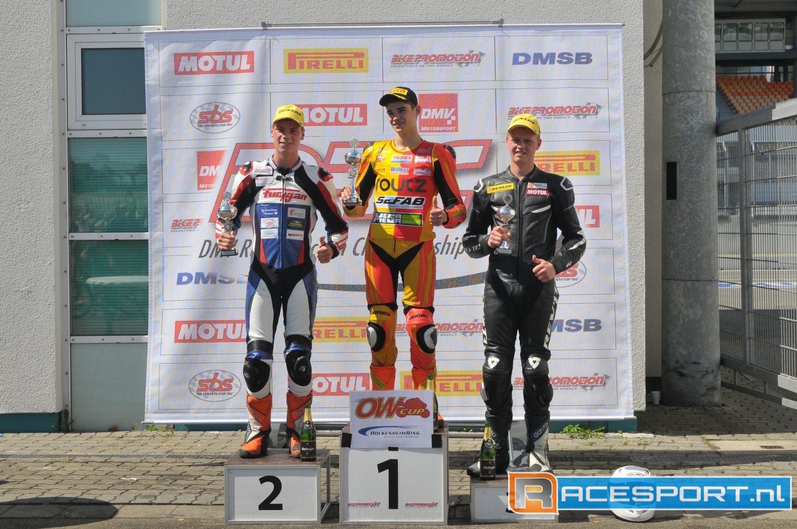 De strijd om de tweede plaats leek lange tijd een strijd te gaan worden tussen Peeters en Van der Sluis maar het waren Brink – zaterdag nog hard gecrasht en nog zeker niet helemaal fit – en Hamberg die gedurende de race steeds verder naar voren wisten te komen en met nog drie ronden te gaan naar de tweede en derde plaats wisten te komen.