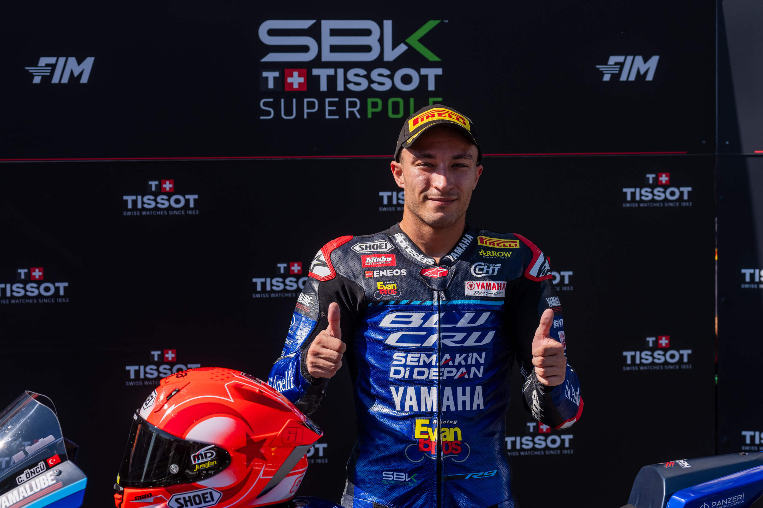 De omstandigheden waren vrijdagmiddag ideaal in Estoril tijdens de 40 minuten durende WorldSSP Superpole. Philipp Öttl (Ducati) opende sterk met een 1’40.205, maar al snel toonde Can Öncü zijn snelheid. De Yamaha coureur verbeterde naar 1’40.092 en later zelfs naar 1’39.608 – een tijd waarmee hij de concurrentie ruim achter zich liet. Kort na het rijden van die toptijd ging Öncü onderuit, maar zijn pole kwam niet meer in gevaar.
