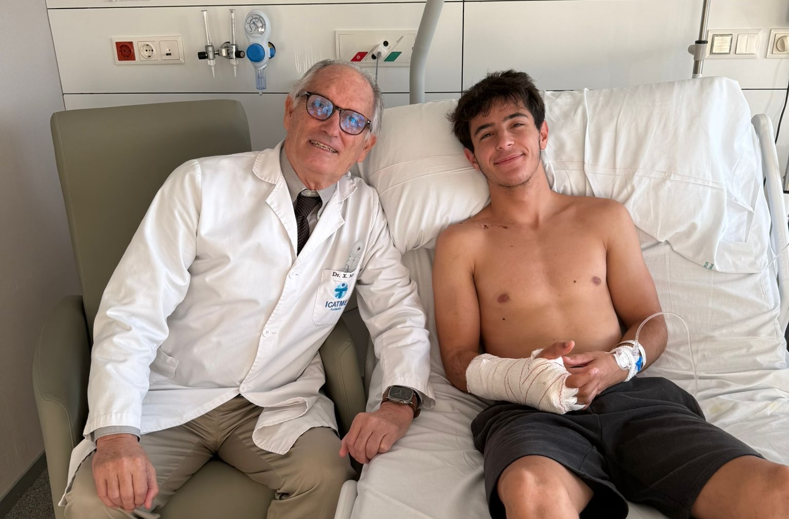 Na enkele dagen intensieve monitoring werd hij donderdag medisch geschikt bevonden om te vliegen. Vrijdagochtend arriveerde hij in Spanje, waar hij direct werd opgenomen in het Dexeus-ziekenhuis in Barcelona. De geplande operatie werd uitgesteld tot maandag vanwege zwelling. Tijdens de ingreep plaatste Dr. Xavier Mir platen in de aangedane botten van de hand en pols.